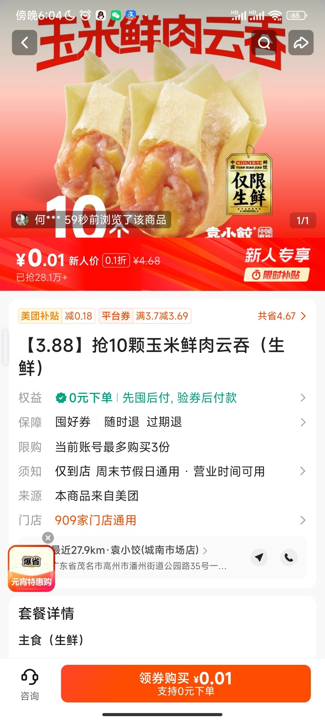 【0.01 玉米鲜肉馄饨】