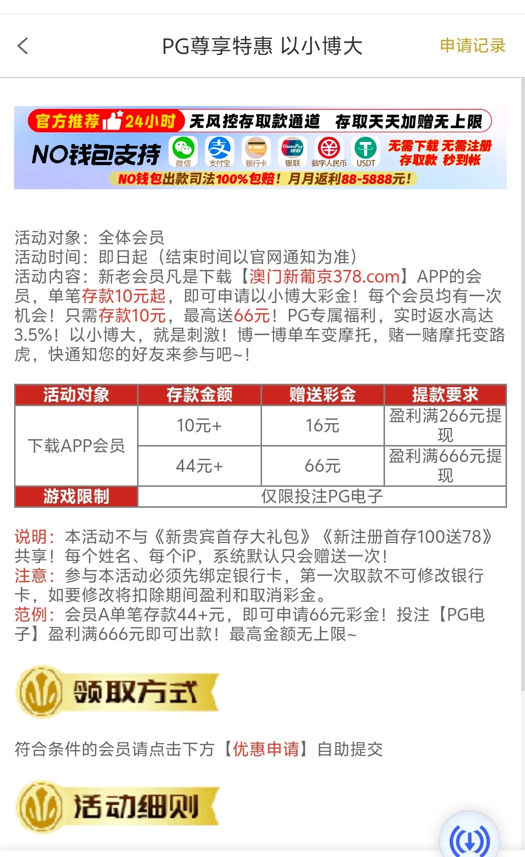 以小博大活动 10+16 44+66 只能PG