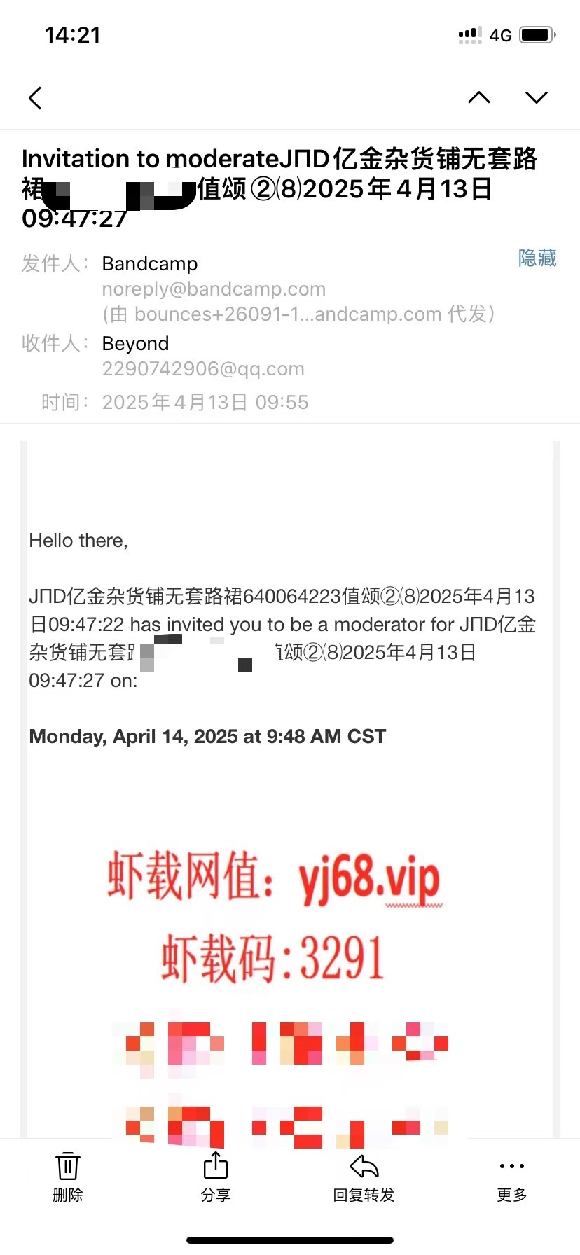 看看邮箱有没有,查Q,下分到账了