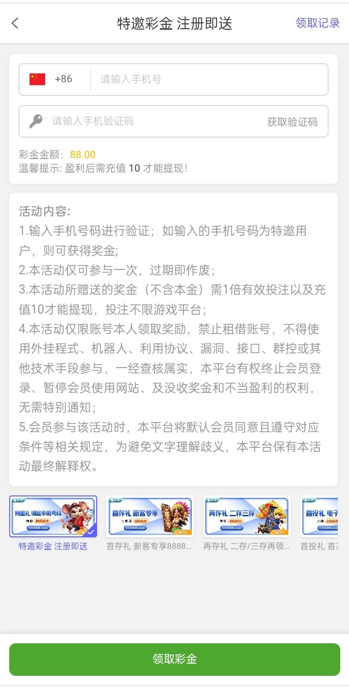 优惠填写手机号自助领取88