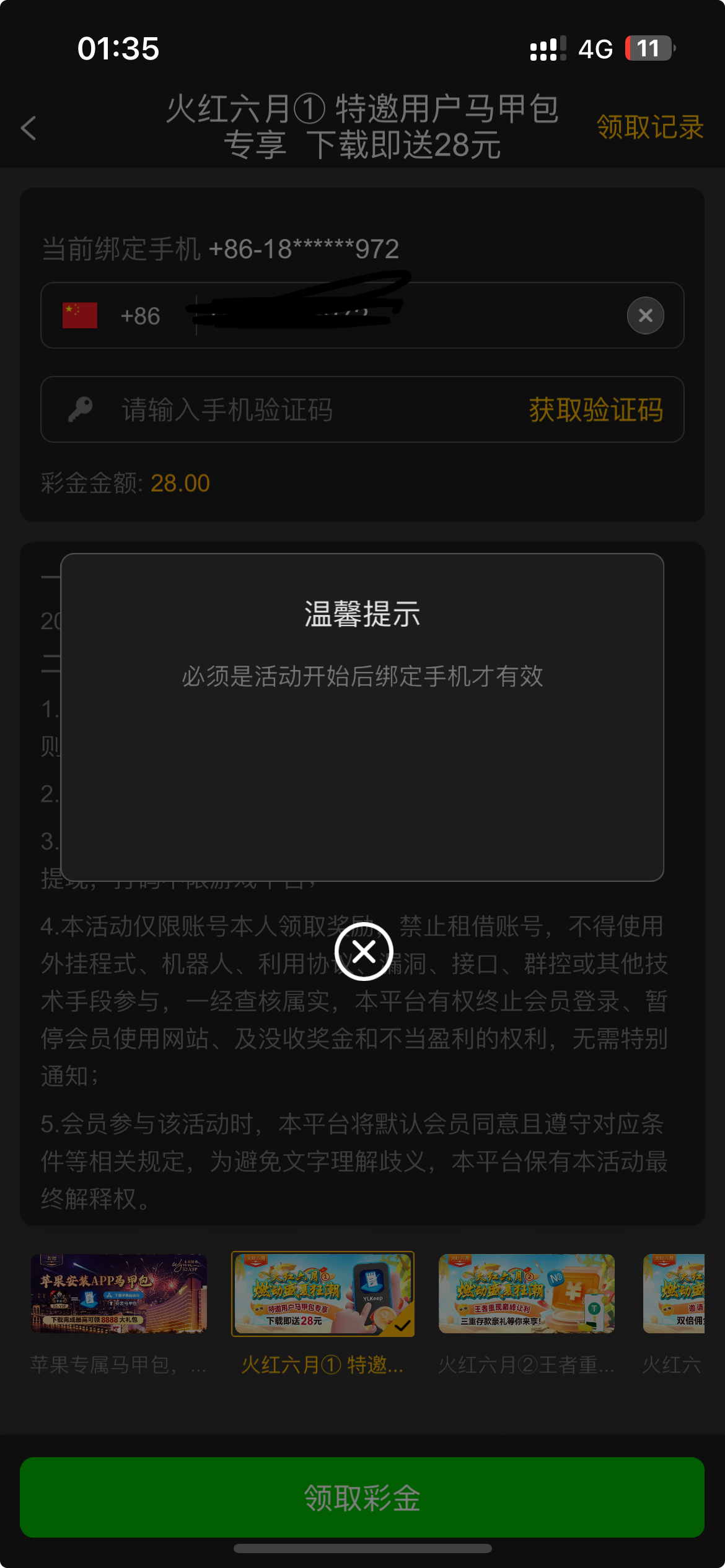 我活动前绑定的领不了你们可以去碰瓷