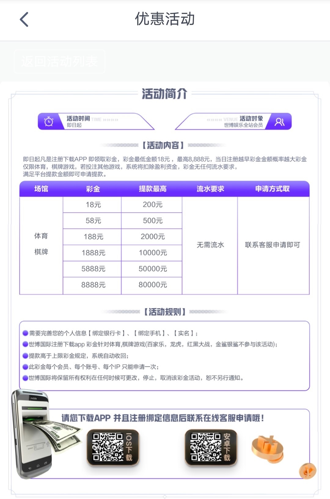 新用户注册下载app绑卡联系客服申请18彩金,无游戏规则。最低100提,宜黄速去,人多了多等等吧