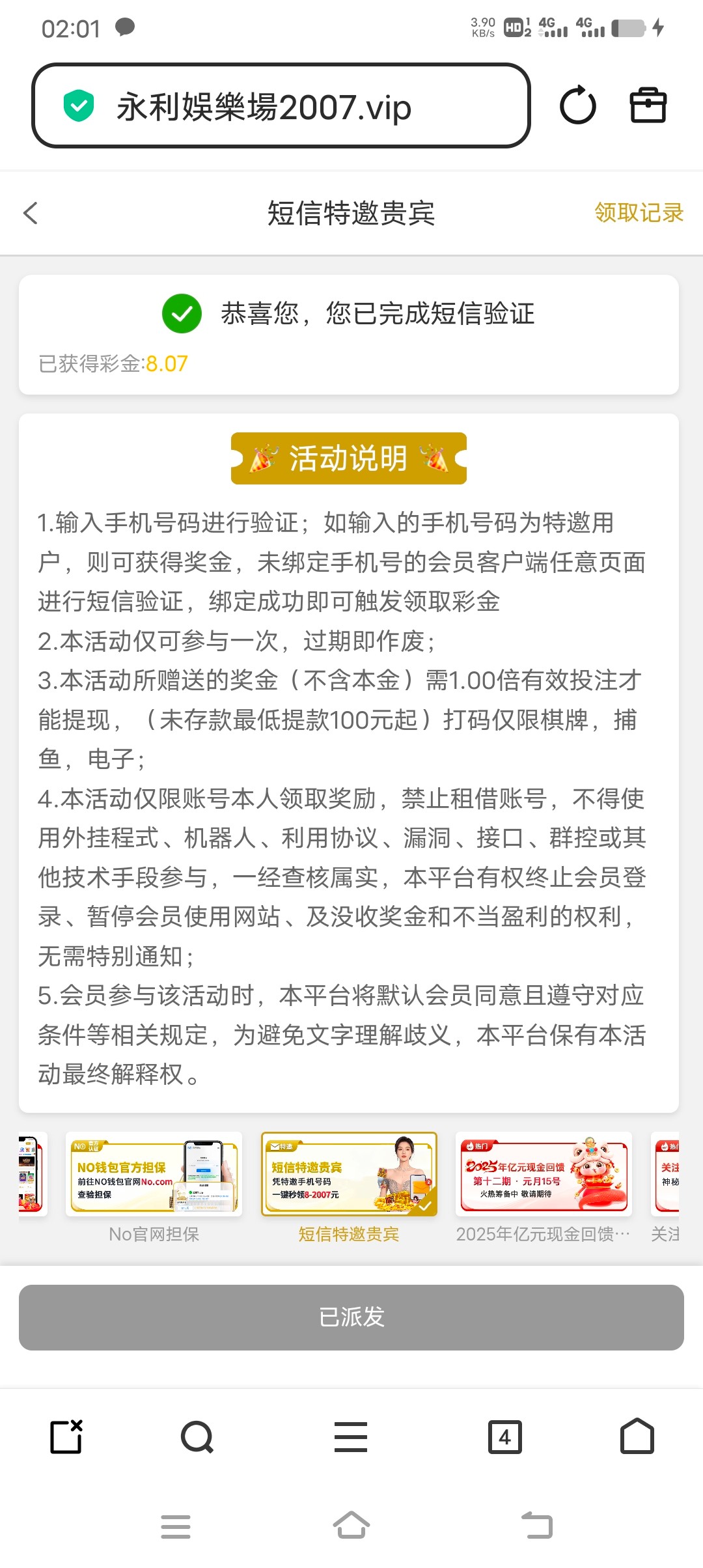 链接:2007.vip 短信特邀用户8元彩金