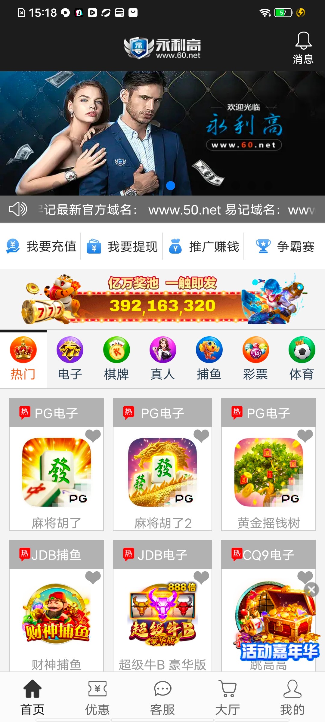 他可以抢红包每天9点一次周六3次,我是存过50提高活跃,经常抢了红包打个3.40下了,但是充值一次只能抢半个月多就又不能抢了