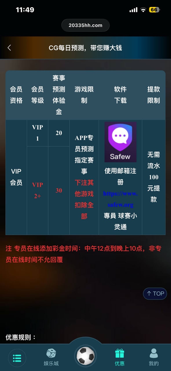 以前皇马/幻影有VIP等级的,去找专员领取,只能下注专员推荐的赛事,彩金没有流水要求,打到100就能提,详情自己去看活动。