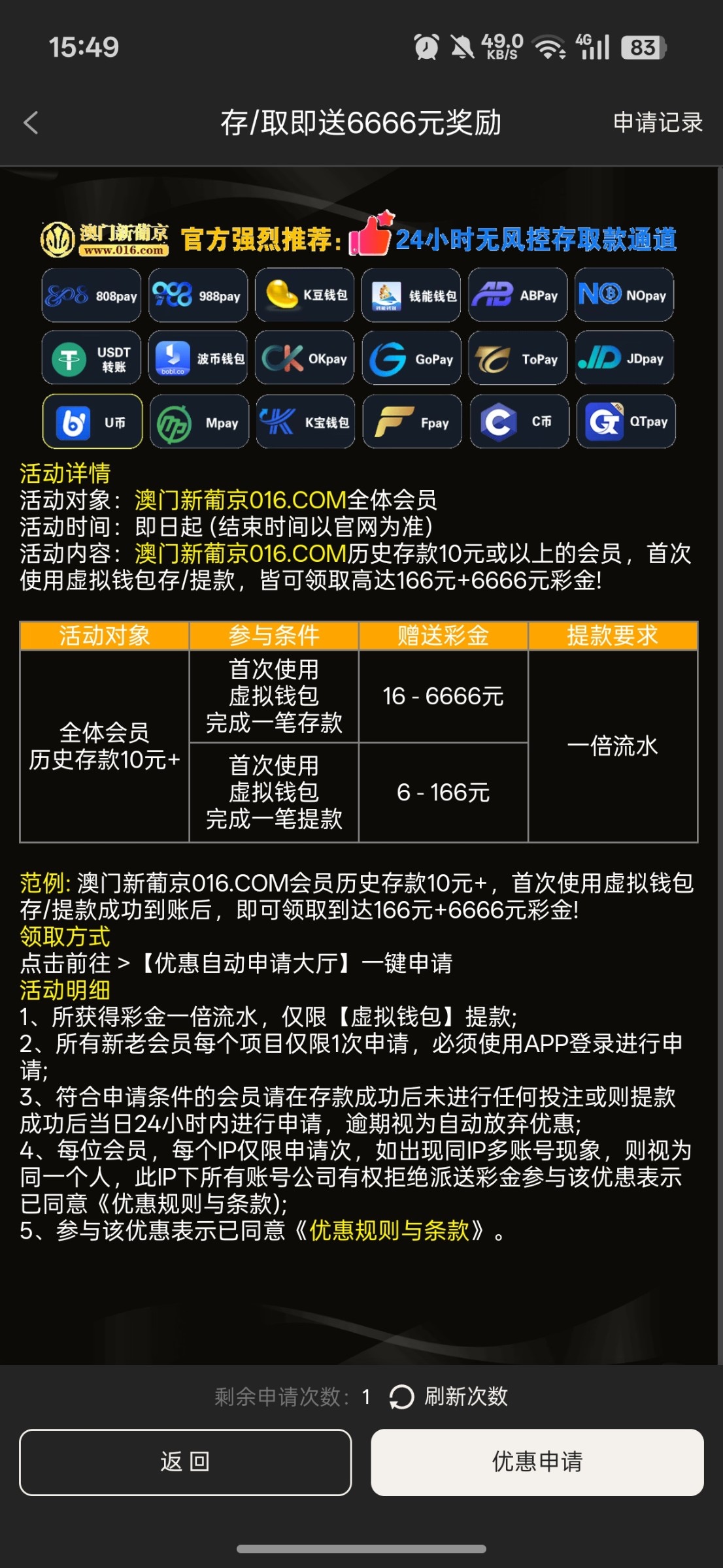 016.com 016x.xyz 首存10可以申请16任务1.6 出款到账