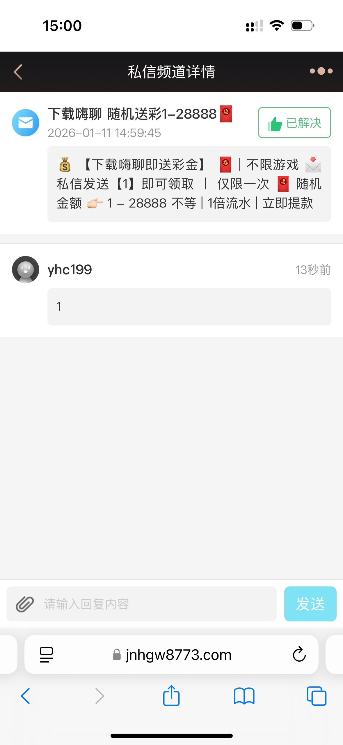 没有,只有叫我回归存送的站内信