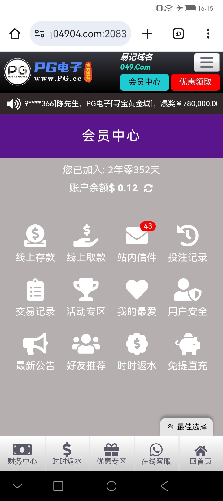 网址:91990.cc或者71774.cc有两个号都领取到了