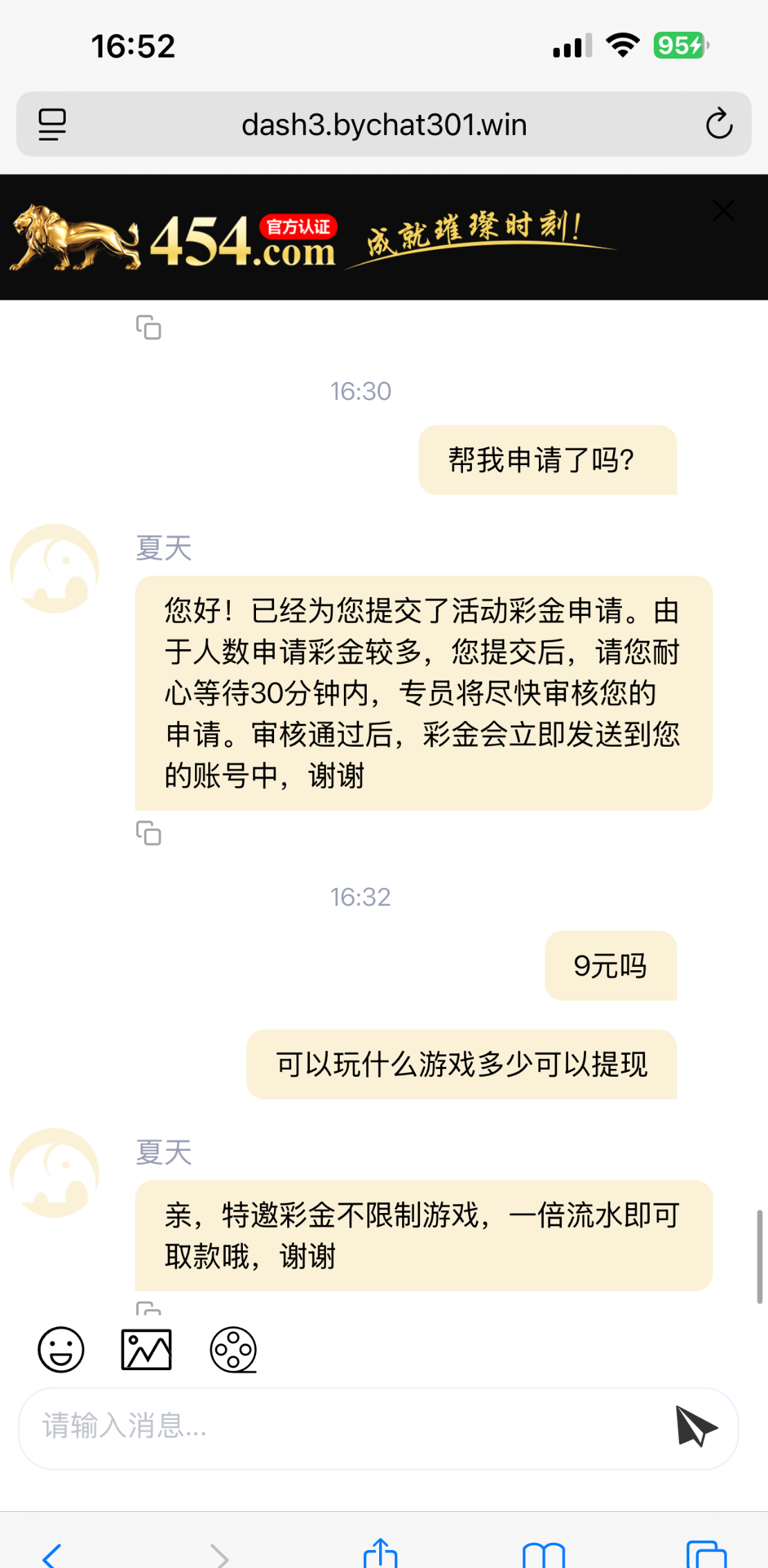 打电话过来送9元让我在新人优惠里自助申请,我没有通道,他让我找客服,我找客户申请给了,我是老号链接454.com