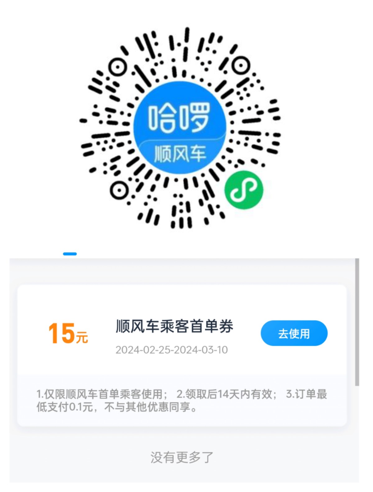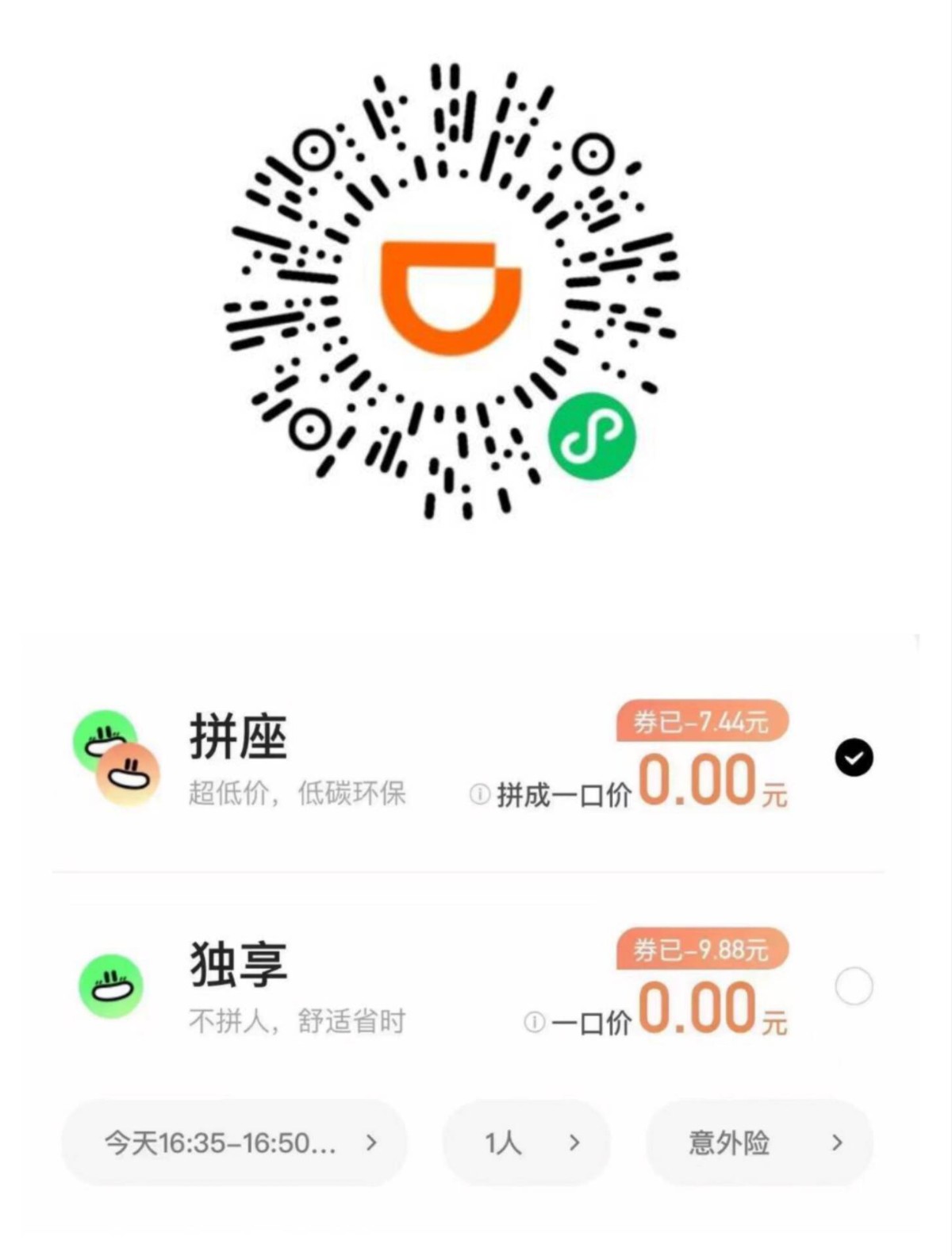 扫码领哈罗15顺风车卷直接拿 打车券速度领 选择独享跟正常打车一样的 不是顺风车(马上开学都用的到 先领卷)