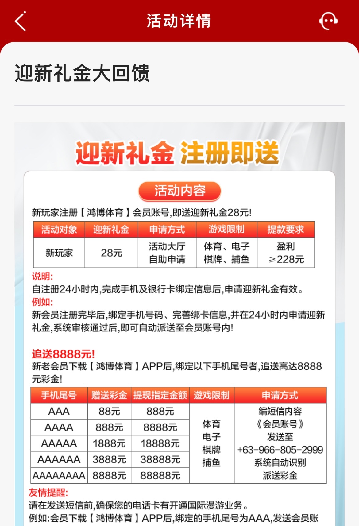 新用户注册绑卡完善资料,下方链接申请28彩金,游戏限制自行查看,最低100提。