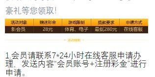 新用户下载APP注册绑卡,绑定手机号邮箱,点个人资料认证手机号和邮箱,然后找在线客服申请28彩金,申请到游戏限制和提现自行咨询客服,具体自测!