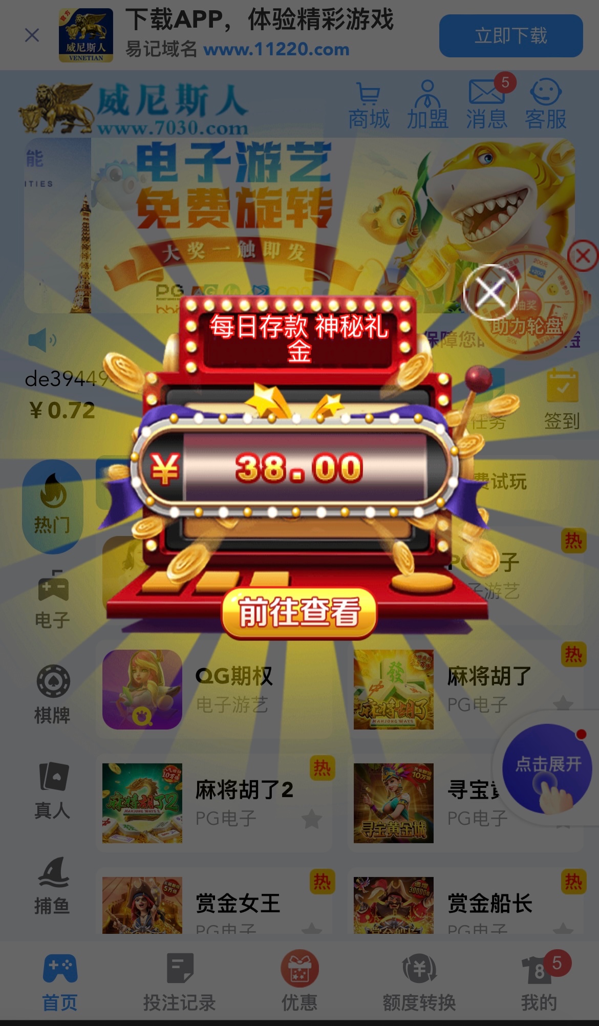以前有账号的登录看看,会弹窗口神秘礼金 金额不定