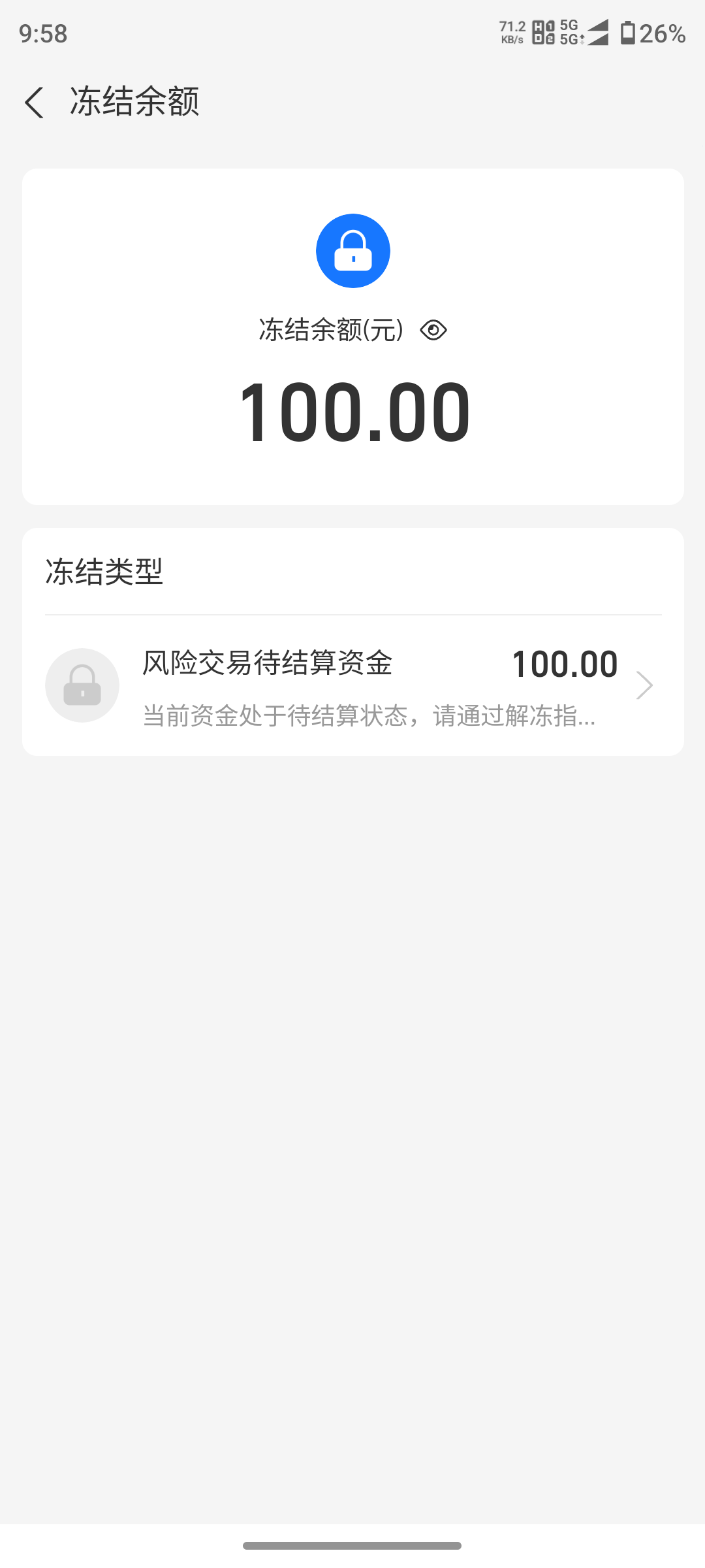 老哥们,我昨天白嫖一百,然后提进钱能,再钱能卖币提到支付宝,刚进来就被限制了,用不了一分钱,这种情况怎么快速解开,现在身上一毛钱都没有了,一天没吃饭了,好饿,这100只能望梅止渴