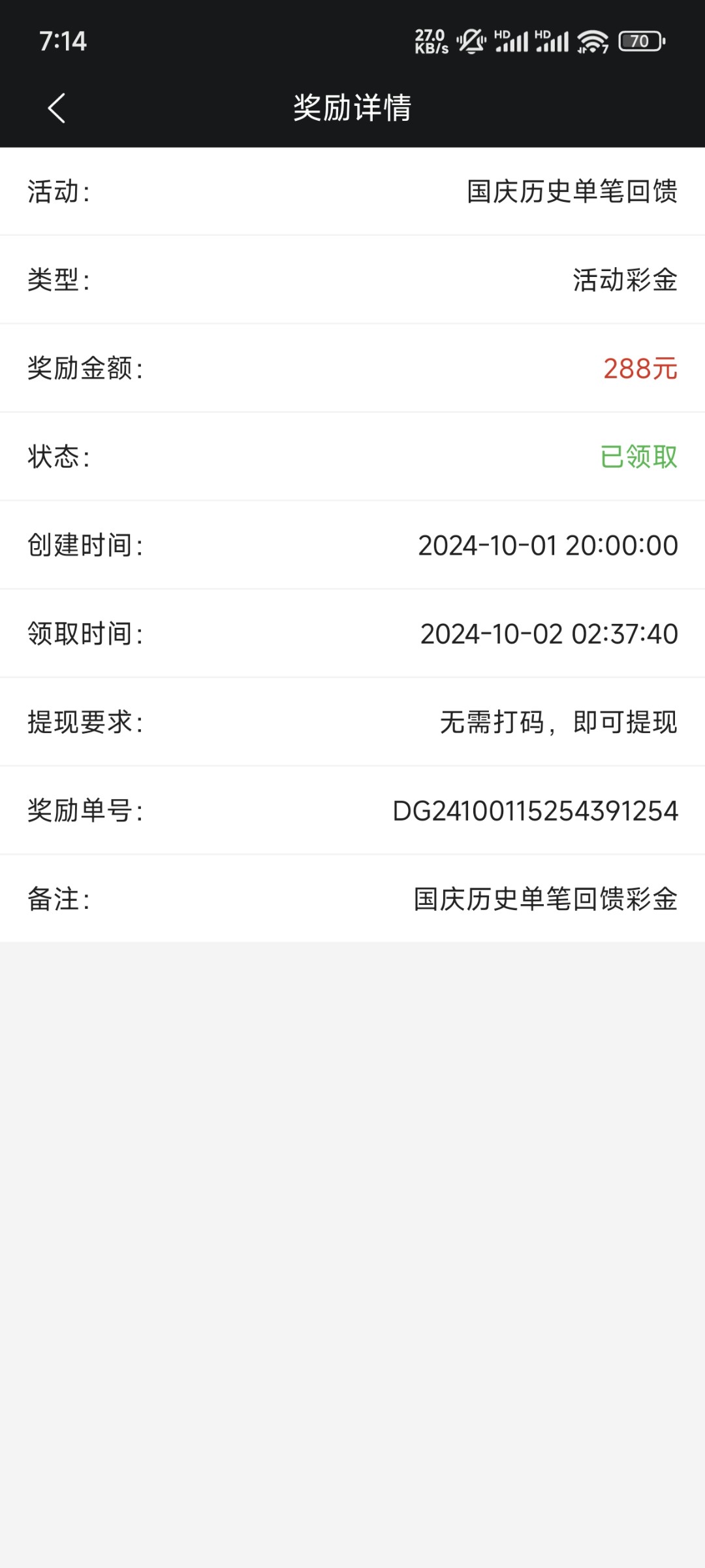 必赢242这次国庆活动给力噢,红包也大,难得抽到这么大的红包