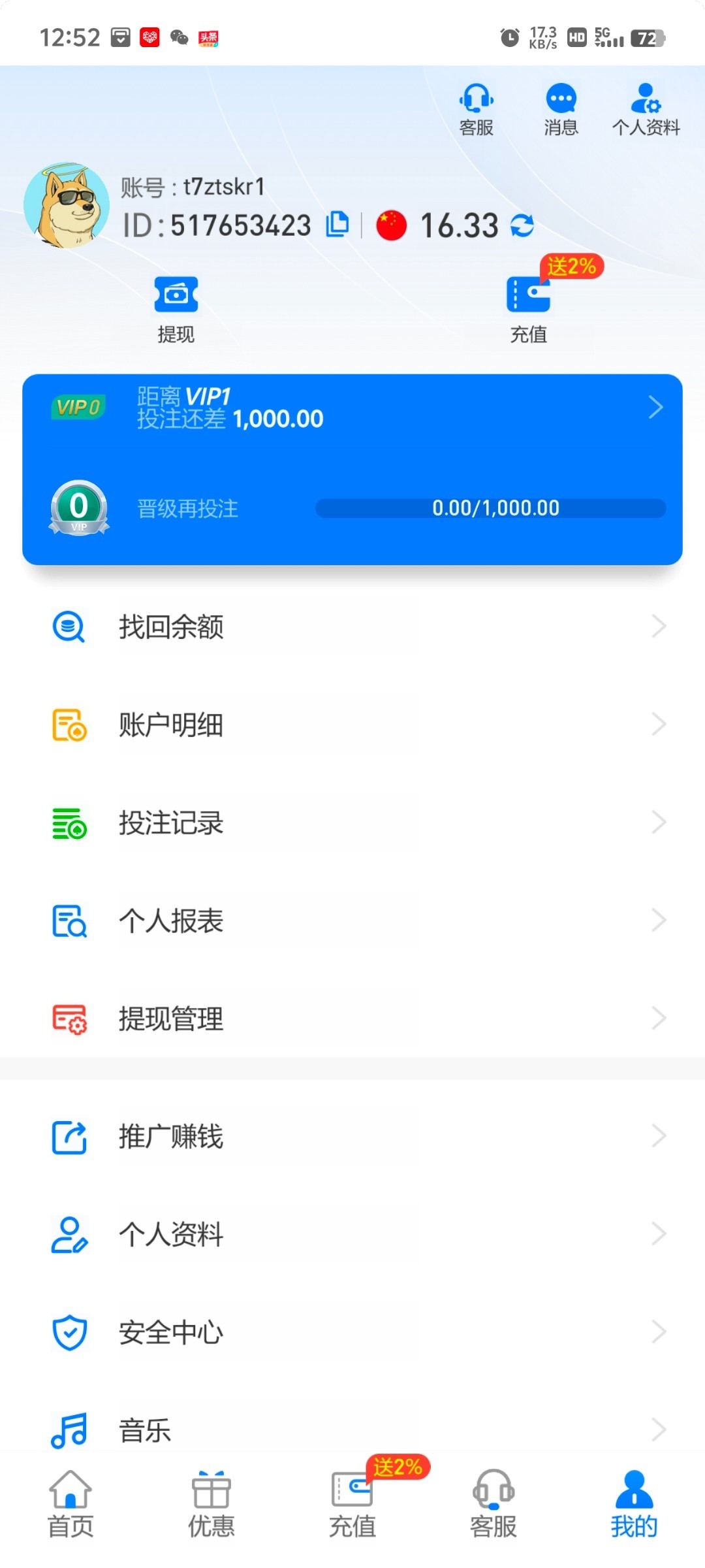 特邀送的挂了,后面领了一块多反水打上了150出款了